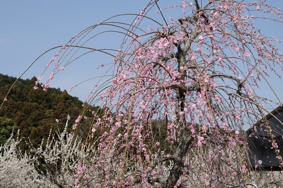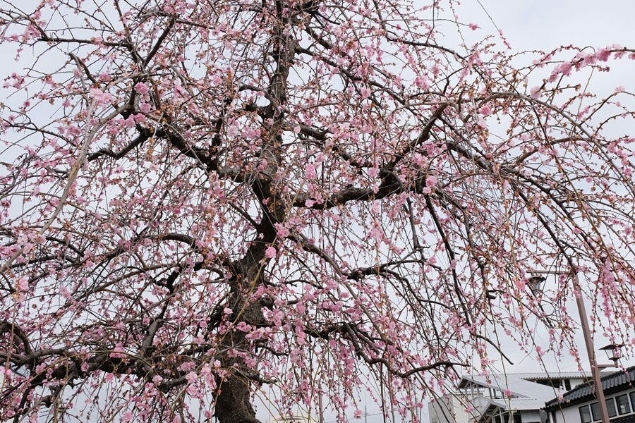 越生駅前に枝垂れ梅の木がいい具合に咲いていた。