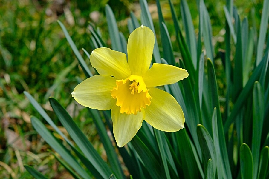 道路脇に水仙。これもハレーションを避けながら撮影