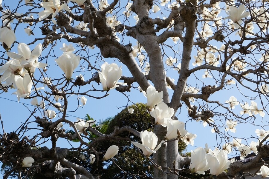 途中の民家にハクモクレンだろうか