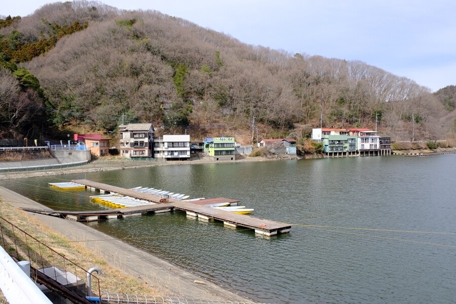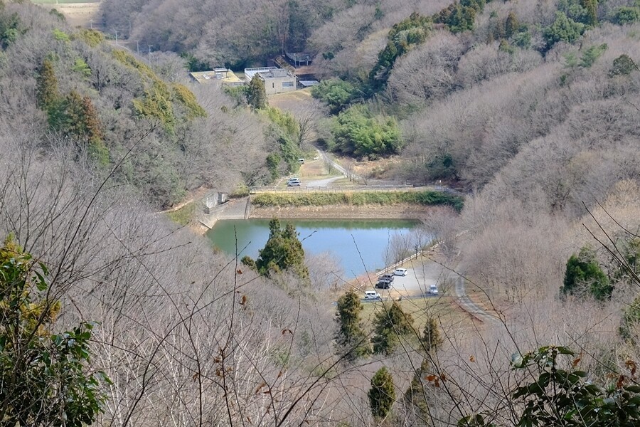 右手が開けて谷津池が見える。付近にはアズマイチゲがあるらしい
