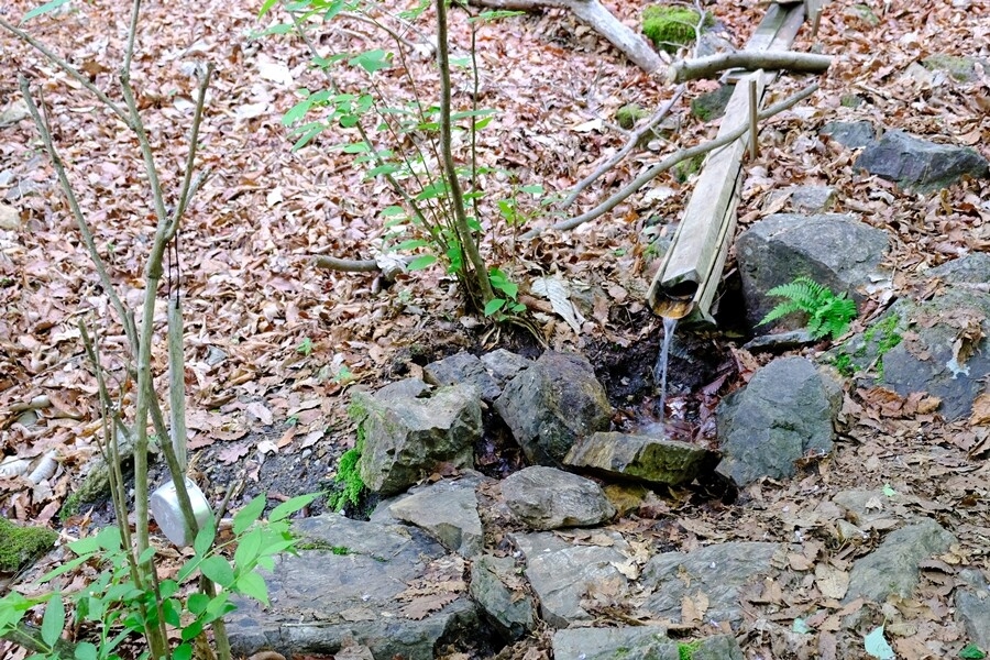 1時間くらいで中間地点と書かれた水場に到着。