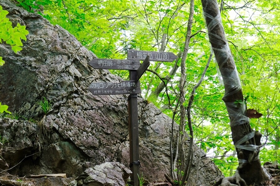 山頂に向かう。分岐を右に山頂(桐生岳)を往復する。