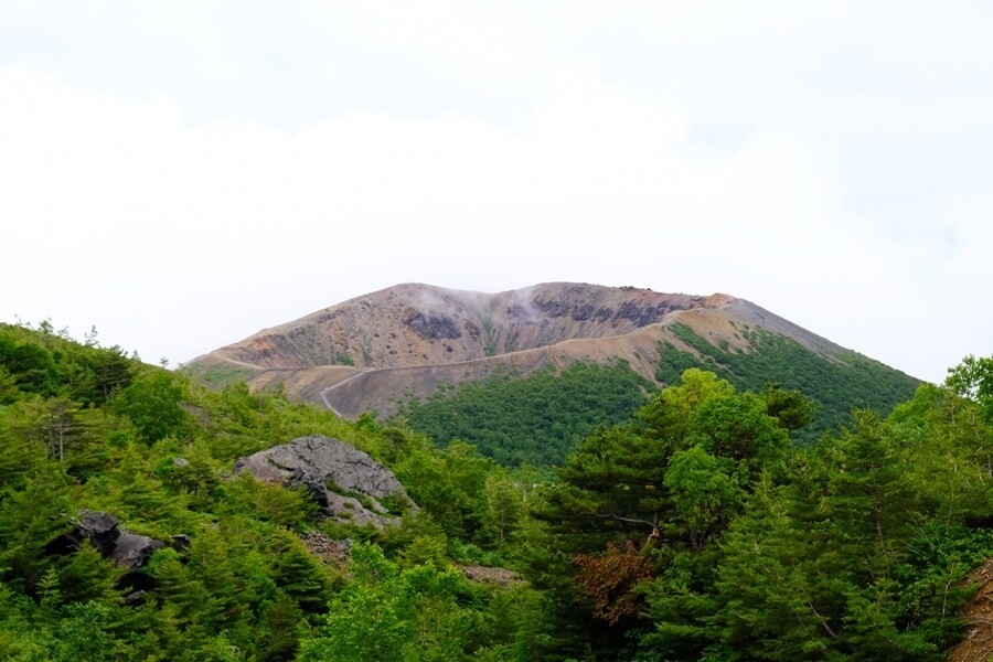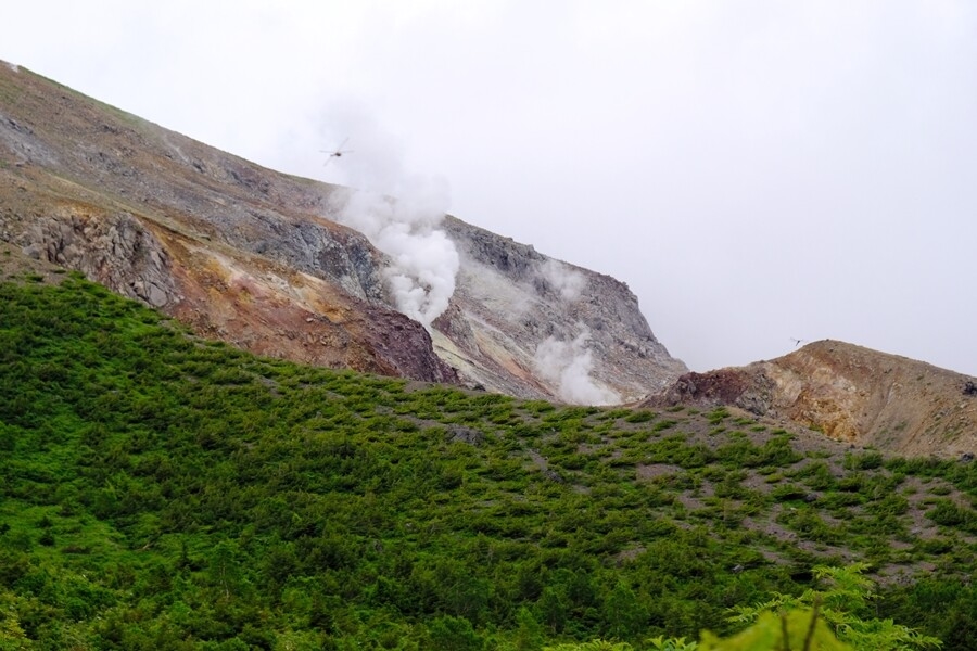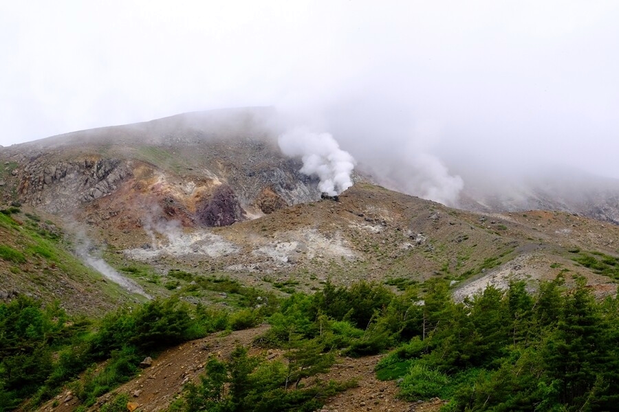辺りは霧なのか火口からの水蒸気なのか分からいけど靄っていた。