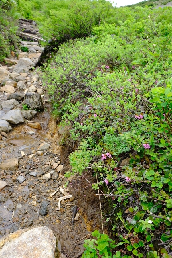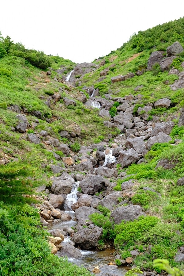登山道にも水が流れているが、脇の沢は水量多し滝が幾つか続く