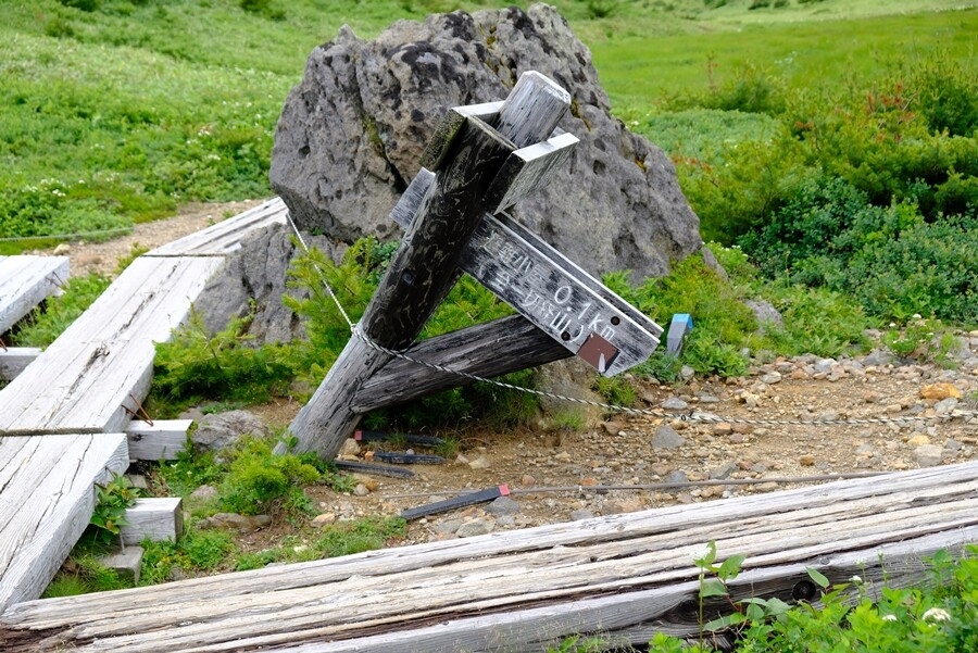 浄土平駐車場は浄土平湿原の端にあり、ここから木道を通って登山道が伸びている