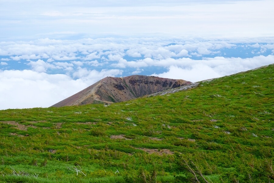 高度を上げると吾妻小富士の向こうに雲海も出てきた