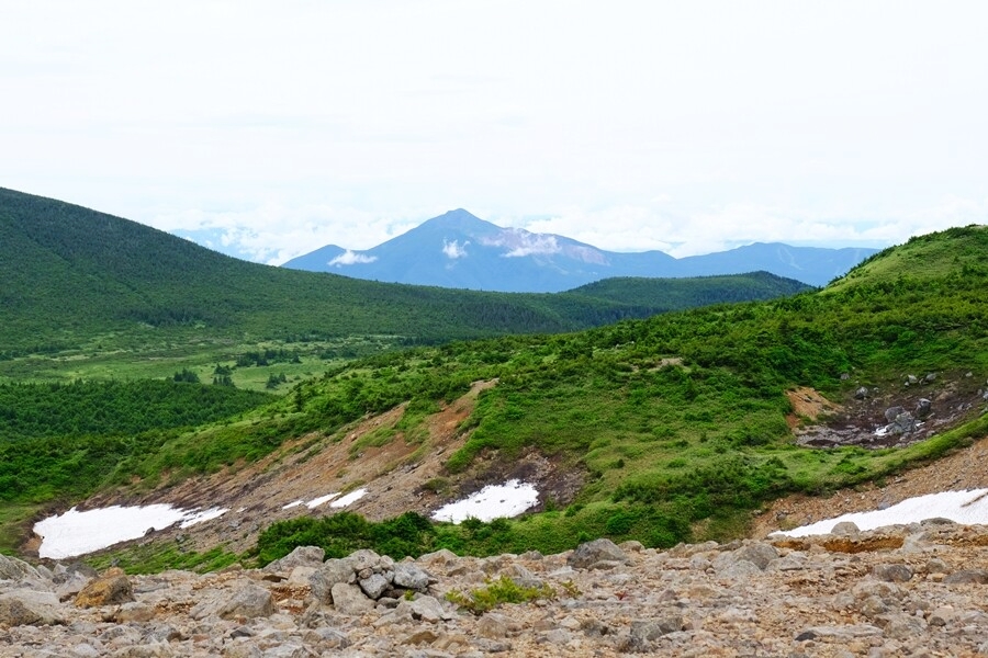 下山開始は13時半近く、左方向には安達太良山が見え隠れする
