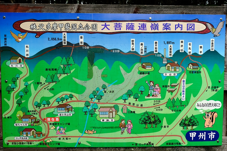 昼食地点の大菩薩峠(介山荘)がくっきり見える。