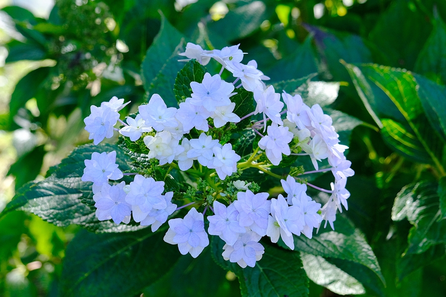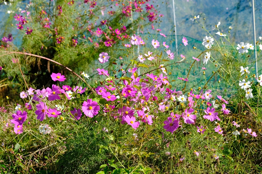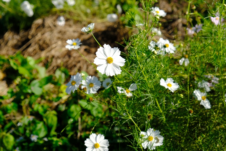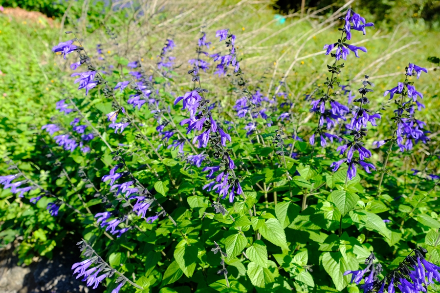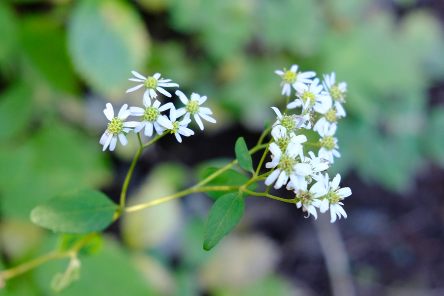 林間の道を暫く歩く。シラヤマギクらしい花が