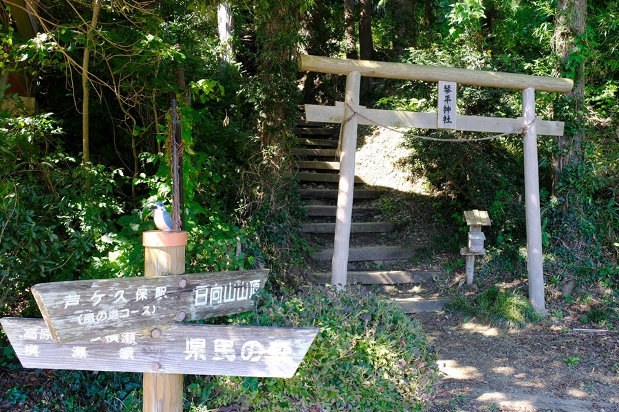 神社の入口、ハイキングコースを行くのはやめて舗装路で芦ヶ久保へ