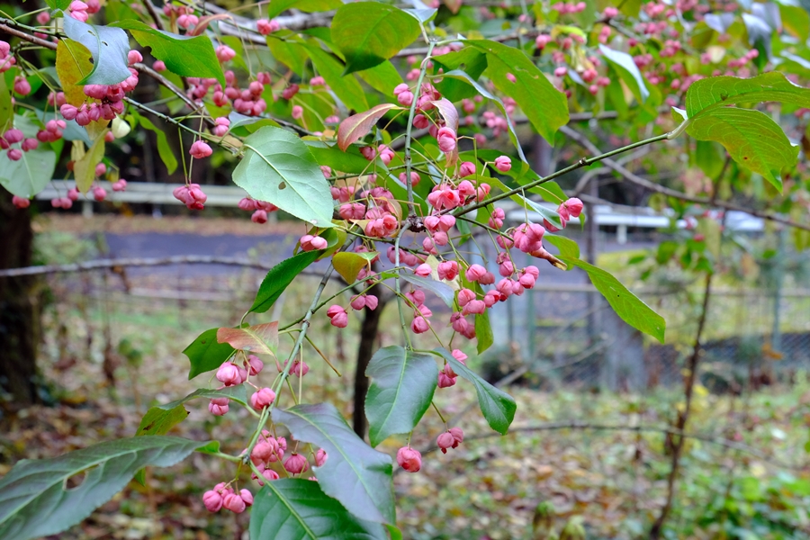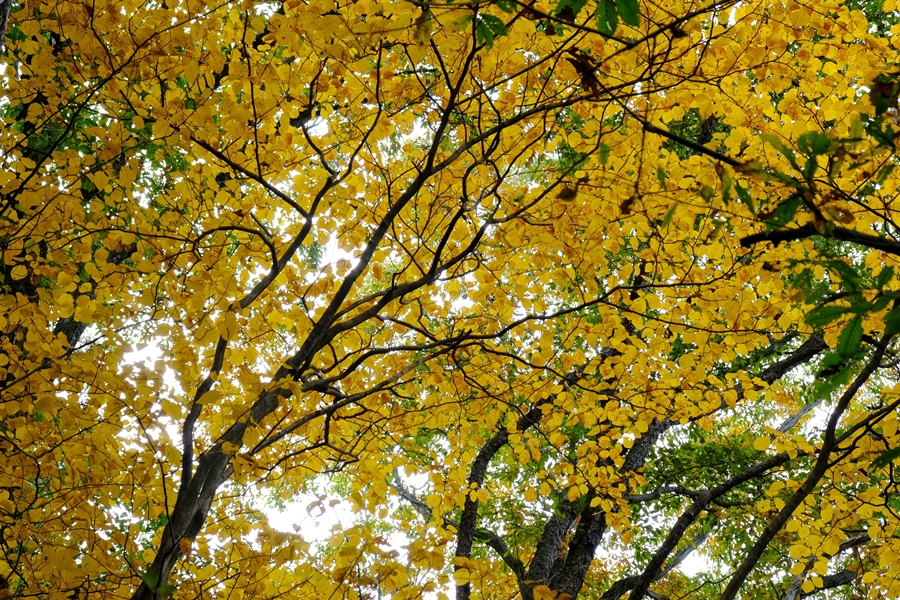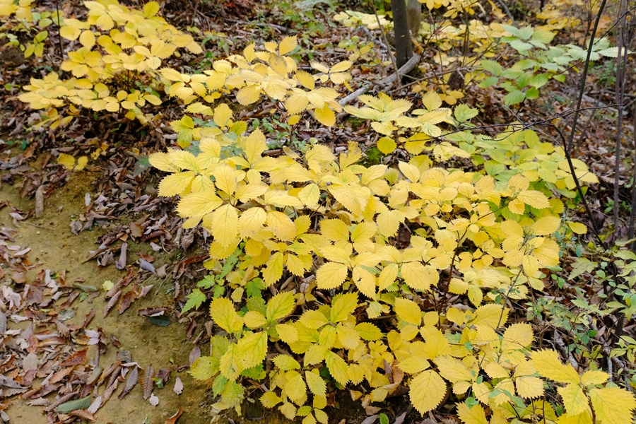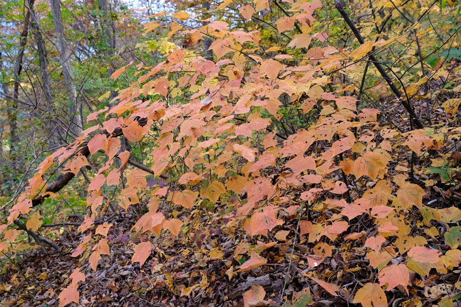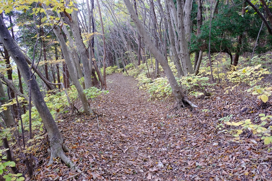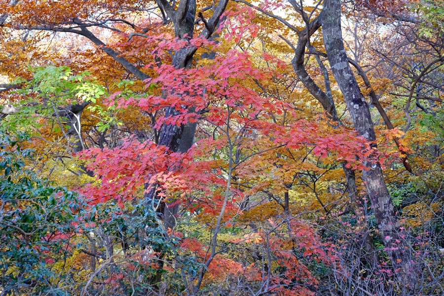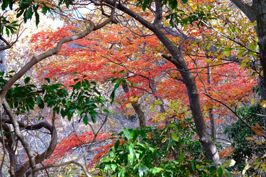 笠山峠に下りながらも所々に色づく木