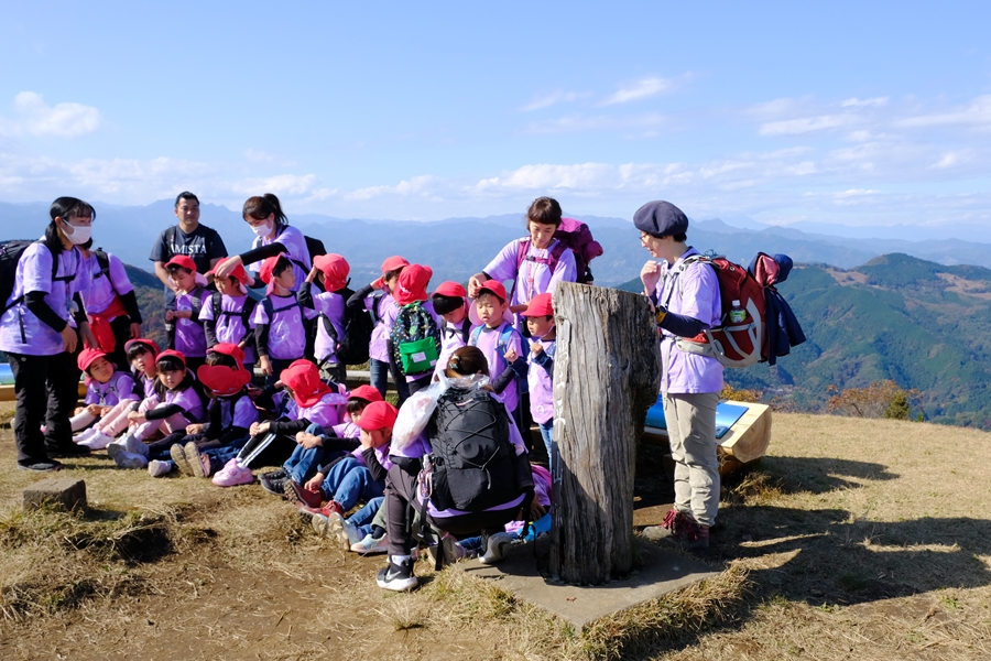 山頂標識周りは幼稚園児に占領されていた
