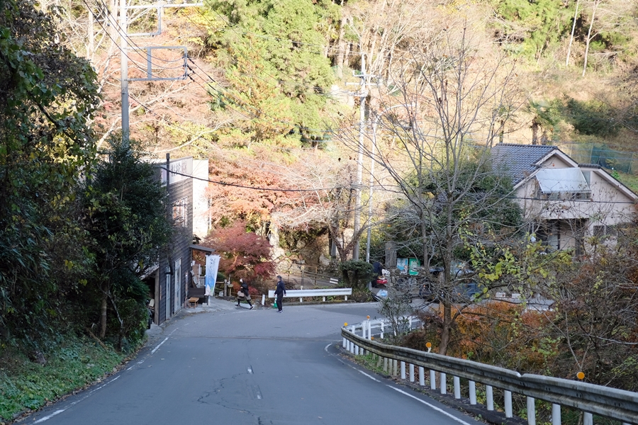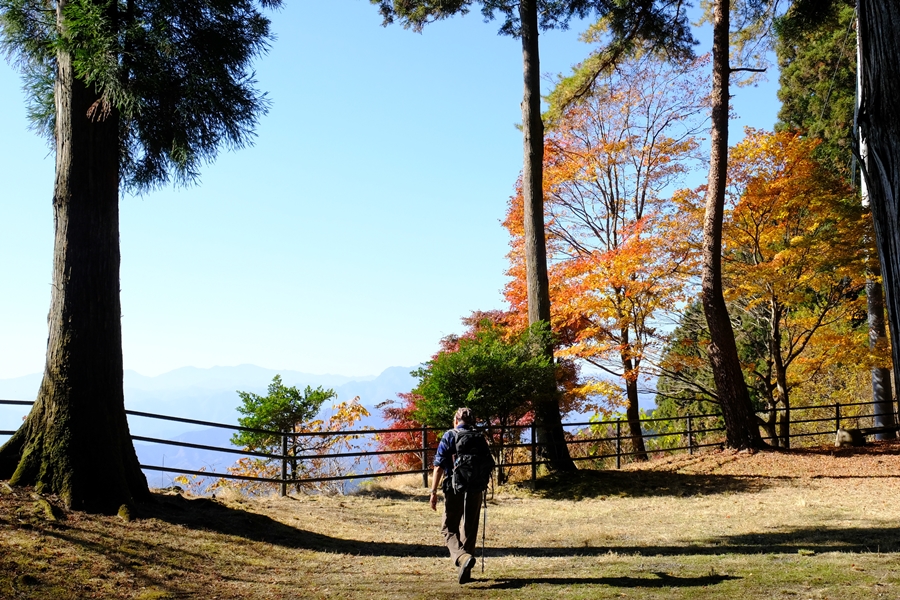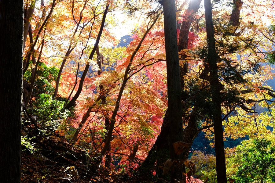 基本杉林の道だが、時々紅葉が点在していて綺麗だ