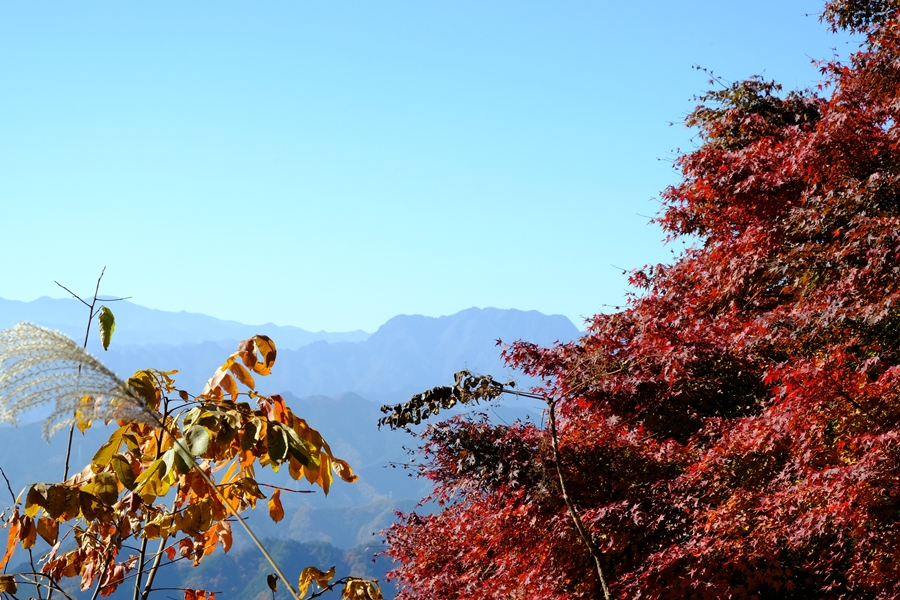 紅葉越しの両神山