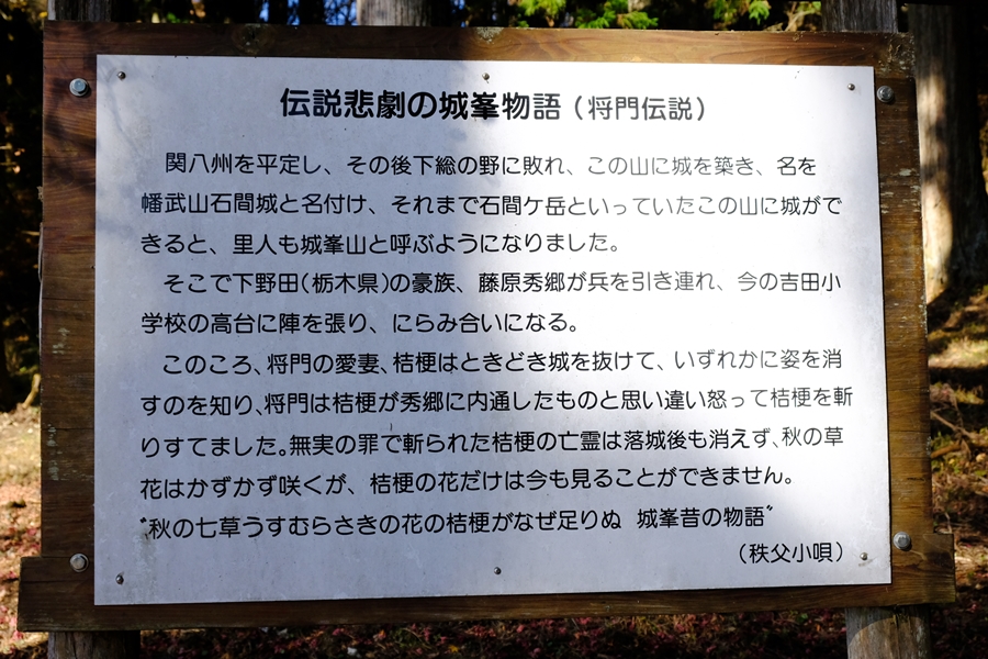 城跡の説明があるが杉林で広場が見当たらない。