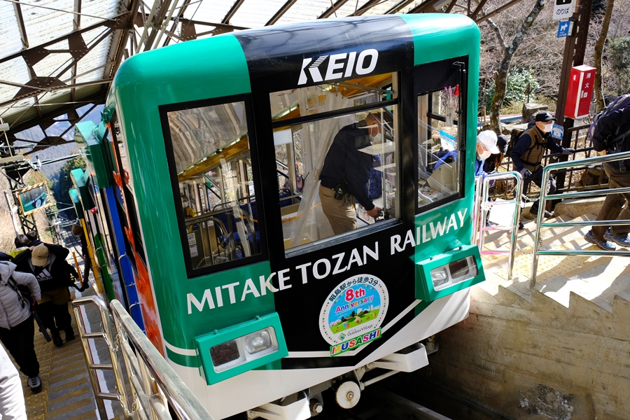 ホームに入って降りてくるケーブルカーを待ち構える。