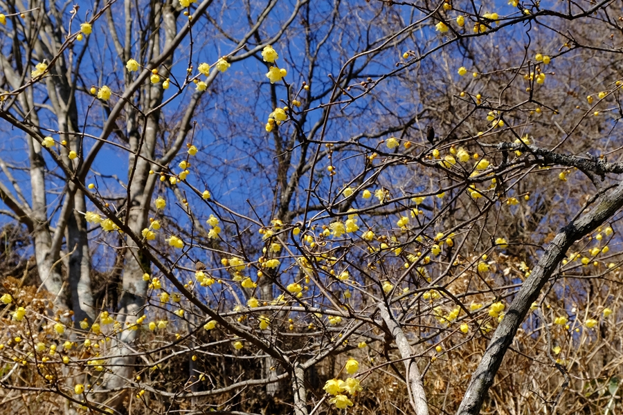 予定より少し早く出発、すぐ蝋梅がちらほらと。