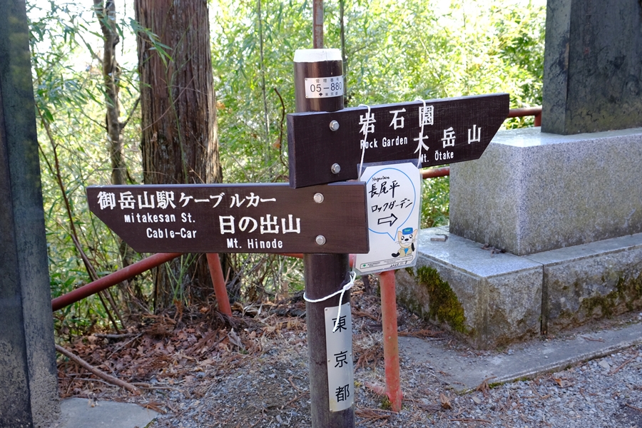 日の出山への分岐を確認する。御岳山に行ってからここまで戻ってくる。