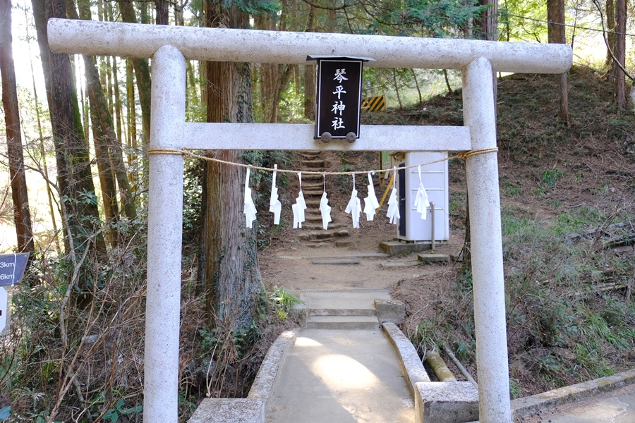 琴平神社を通過し、鳥居まで下山する。14時15分ここからは舗装道路歩き