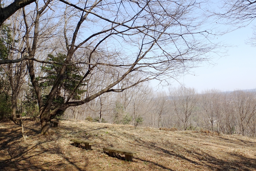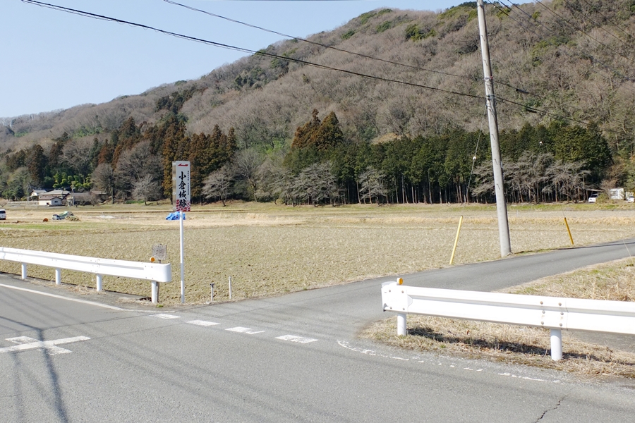 向かい側の小倉城跡案内板後方に遠山十本桜が見えた。