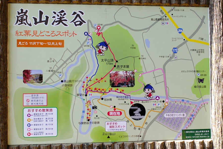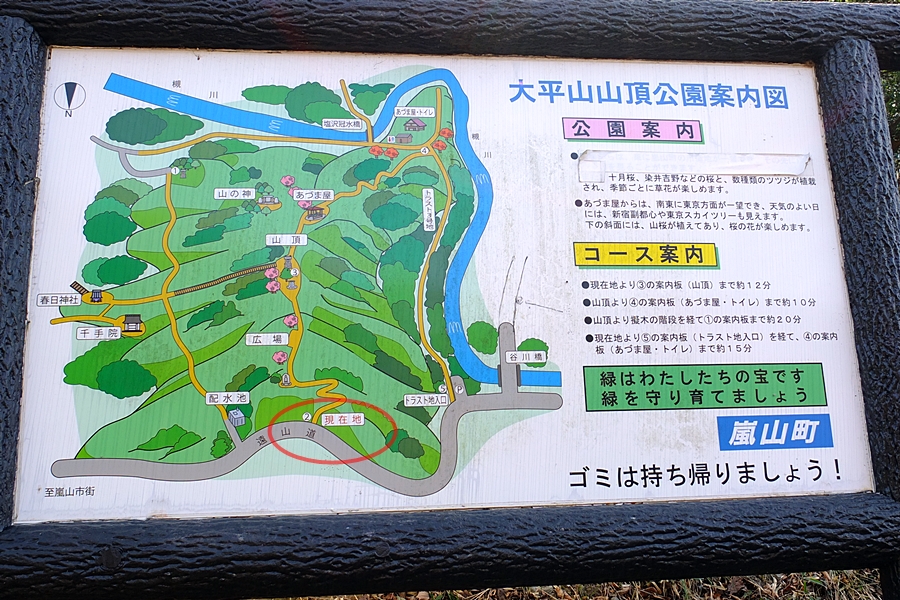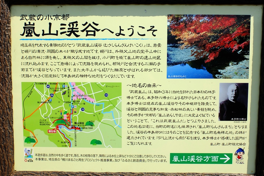 10時3分武蔵嵐山到着、駅前の案内看板にも桜堤が載っている。