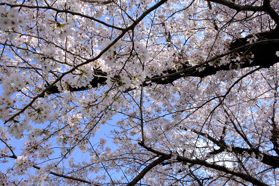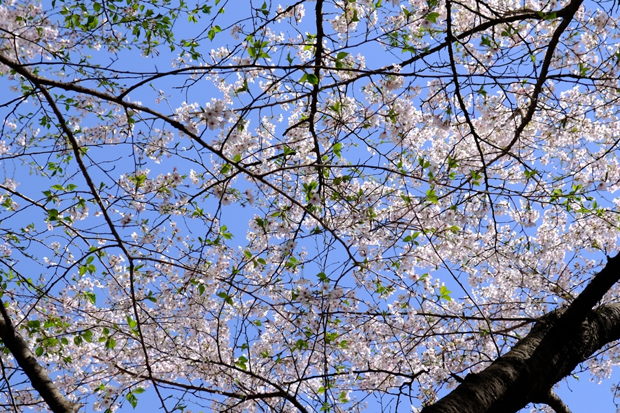 桜の木の下から見上げる