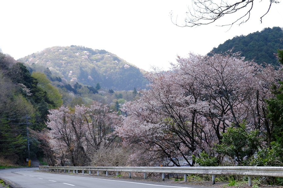 登山口が近づいてきた。手前にも桜いっぱい