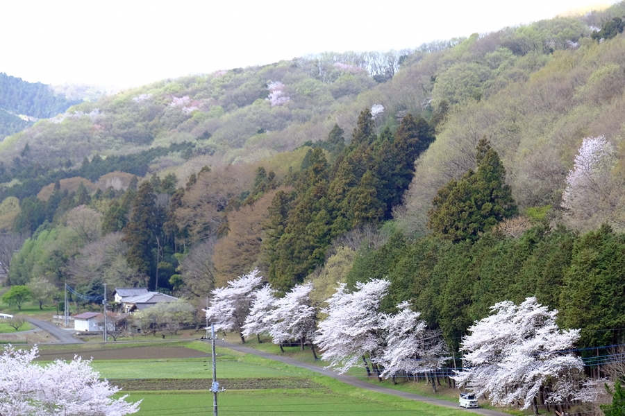 見渡せる山々のあちこちに桜があることがよく分かった。