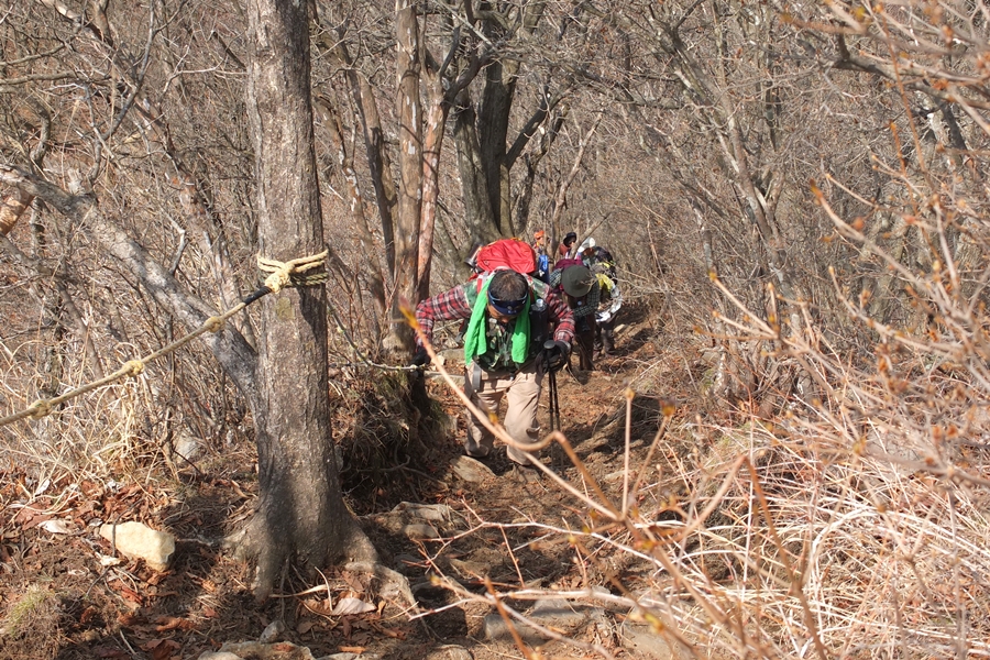 いよいよ十二ヶ岳頂上直下のロープが張られた急登を上がります。