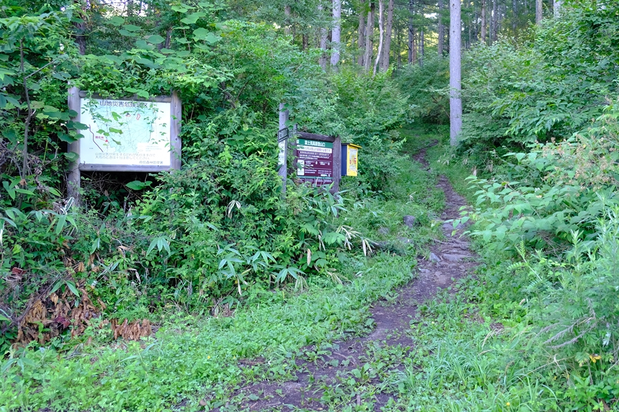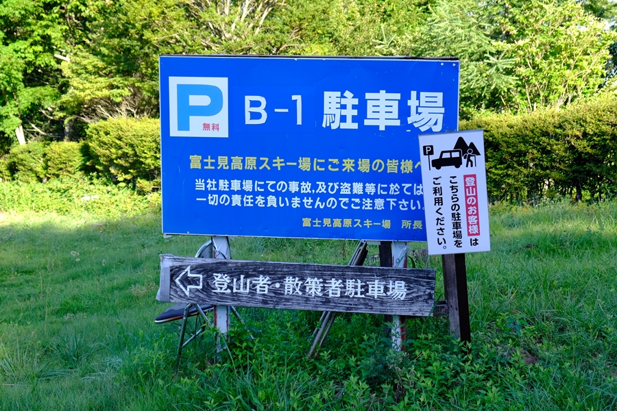 スキー場&ゴルフ場駐車場の一角に登山者用駐車場があり親切だ