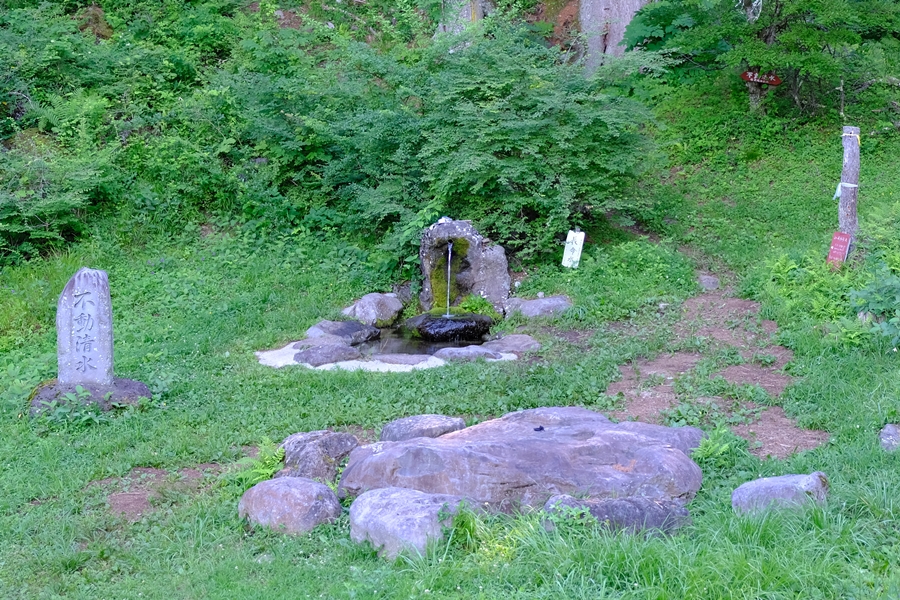 下りは得意なはずだが、疲れがひどく一度座り込んで休憩し、12時15分に不動清水で昼食にした。