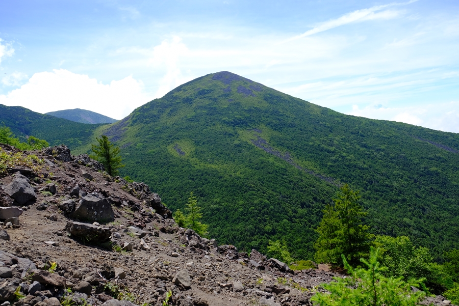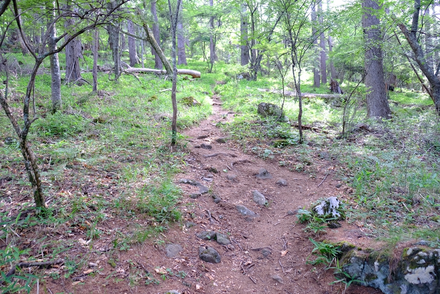 西岳への山道は序盤はなだらか、中盤でやや傾斜が出て、山頂手前ではかなり急な岩混じりの上り坂が延々と続く