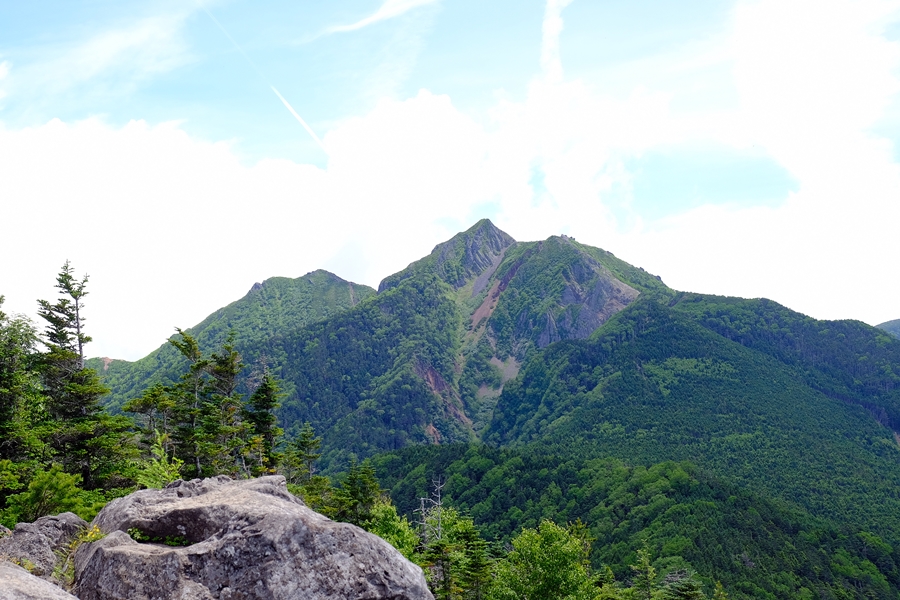 編笠山と青年小屋も見える。あそこまではとても行けそうもない