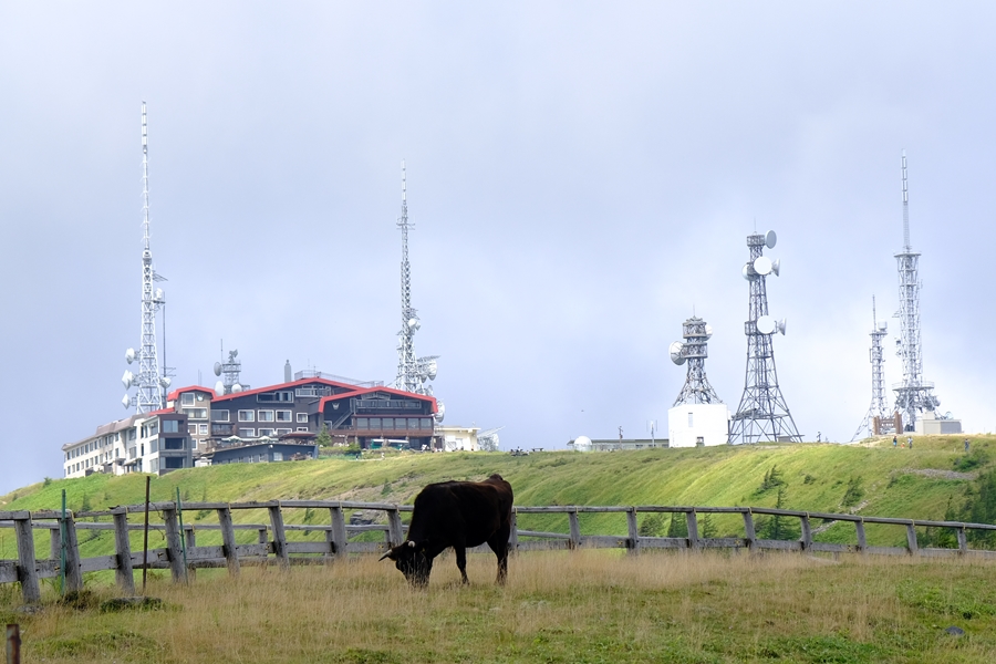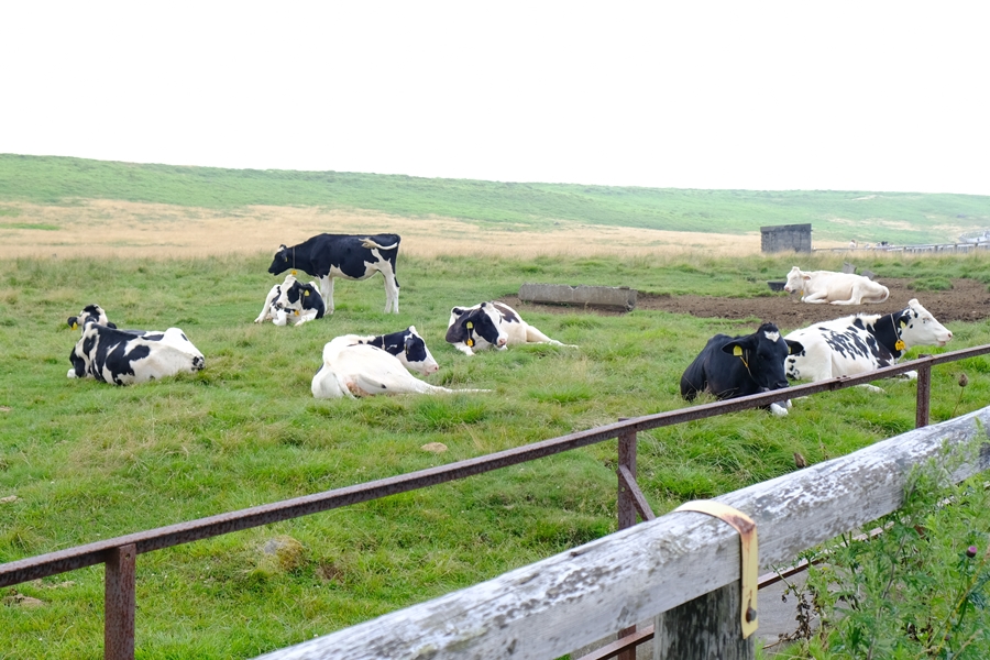 この辺りには放牧された牛がのんびり草を食べている