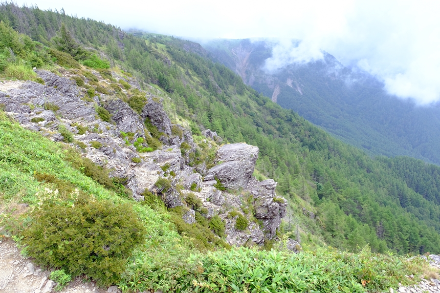 左側方向は崖になっている。