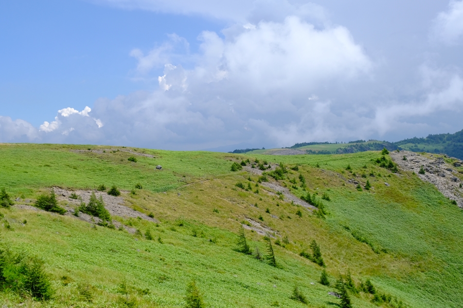 草原の中を通る道は帰り道のアルプス展望コース