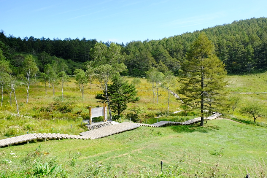 山頂駅でトイレを済ませ、裏側の道を進んで再度湿原へ(スズラン群生地方面)