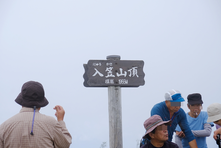 山頂標識の周りに不良老人グループが占拠している。おまけに喫煙まで
