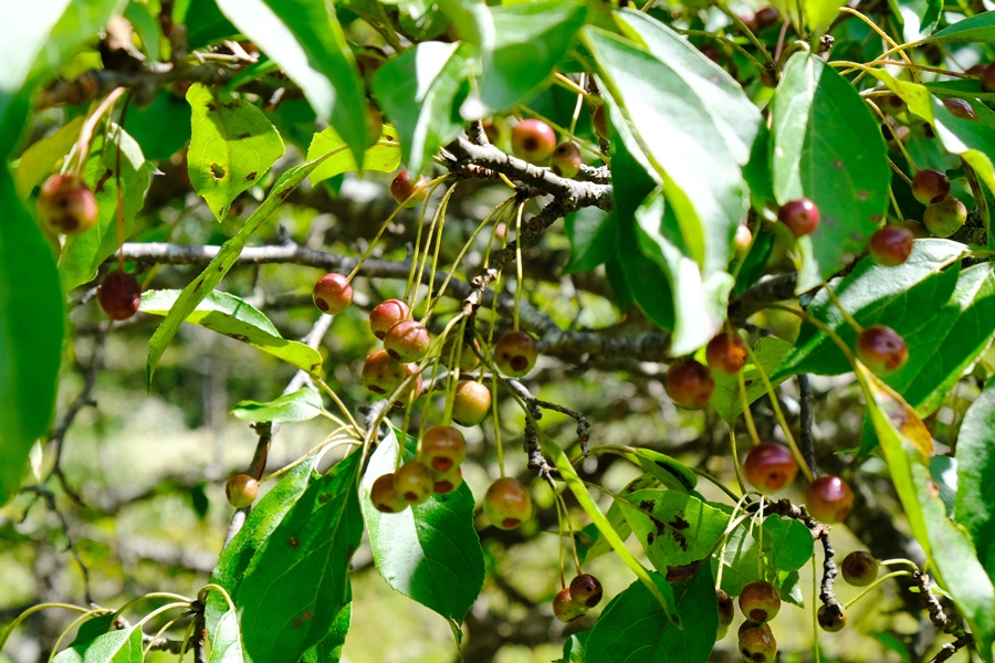 湿原通過中に何とかリンゴの木が実を付けていた。ズミっぽい