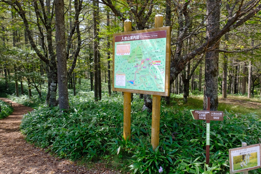 コースは沢入登山口から入笠湿原へ、山頂往復後ゴンドラ駅方面を周回して湿原に戻り、沢入登山口へ下山。