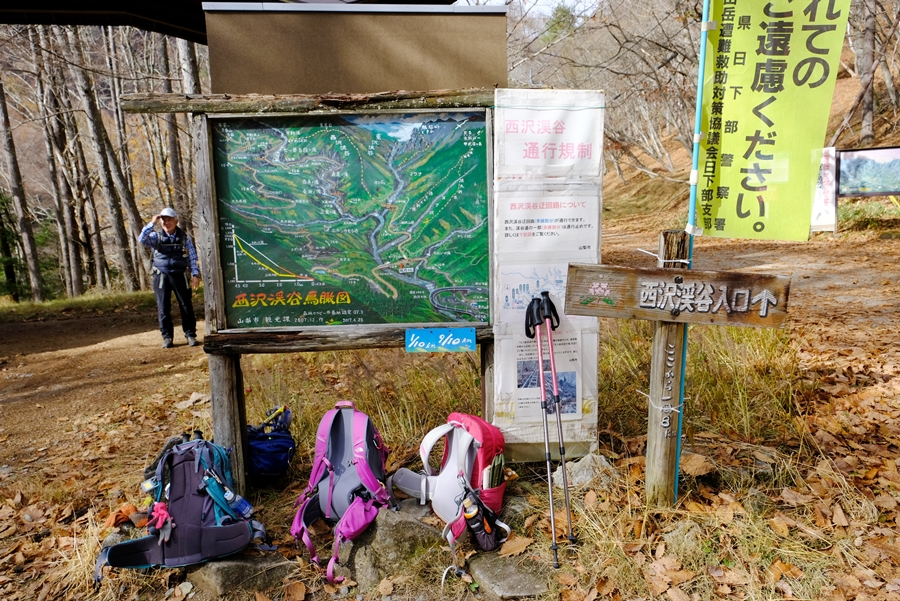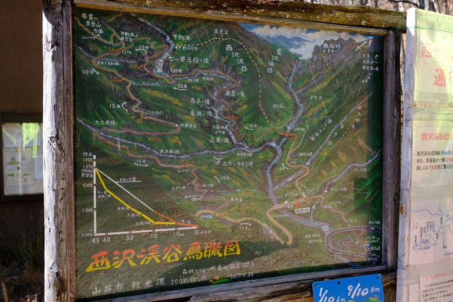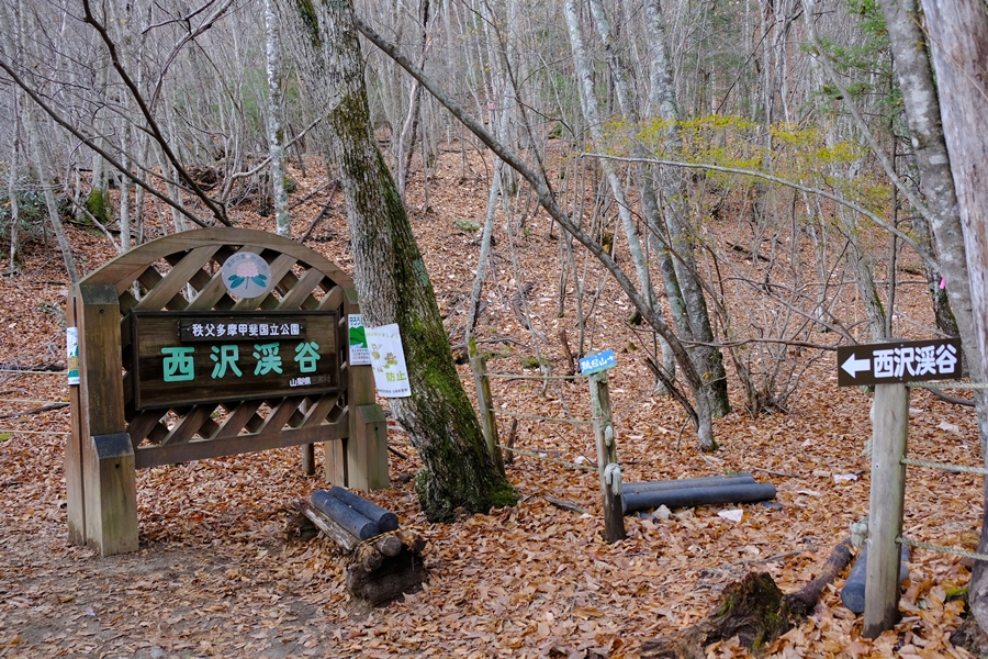 西沢渓谷入口のトイレがある分岐点で周回のゴール地点