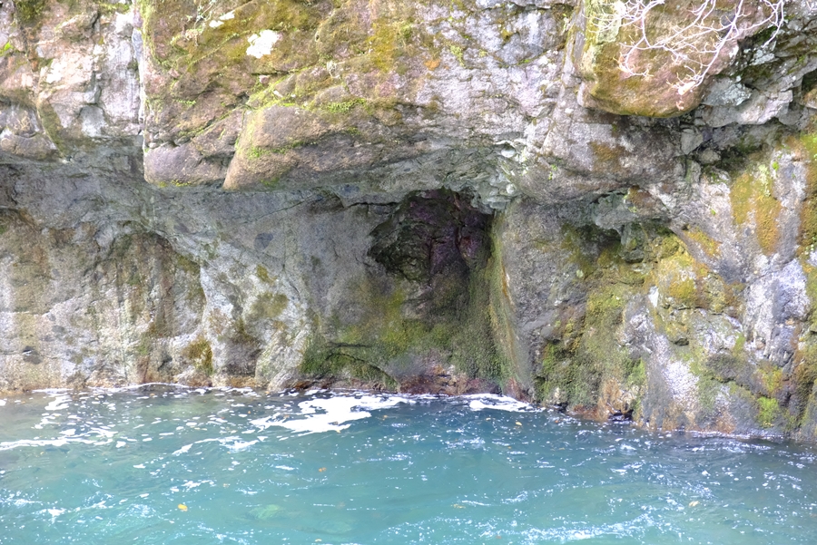 人面洞、この辺りで空から白いものが降ってきた。(雪)