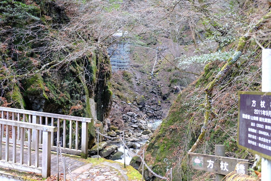 ここから橋を渡り、岩場を上がるコースとなりその先で崩落したらしい