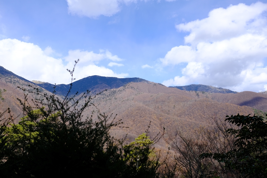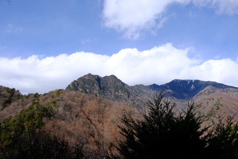 途中の大展望台は木々が開けていて、北側の山々が綺麗に見える。雪をかぶっていた。鶏冠山と木賊山