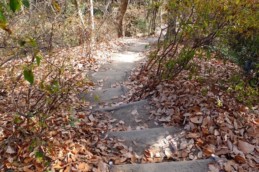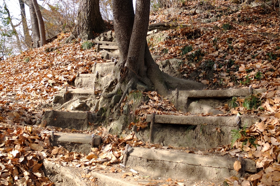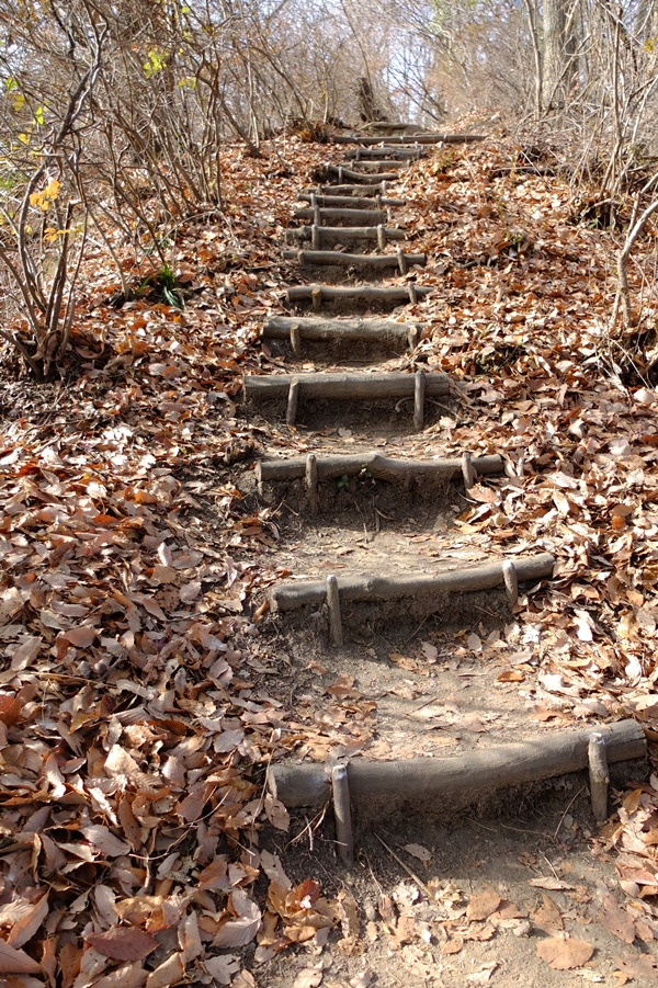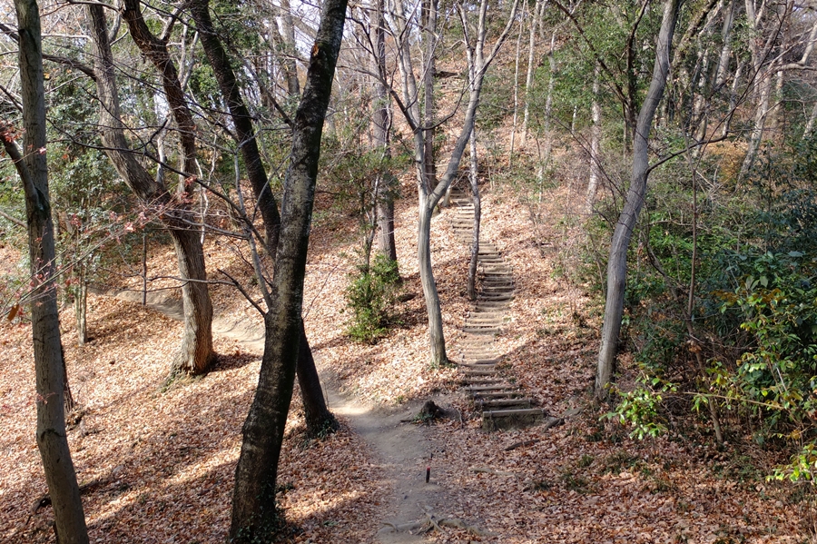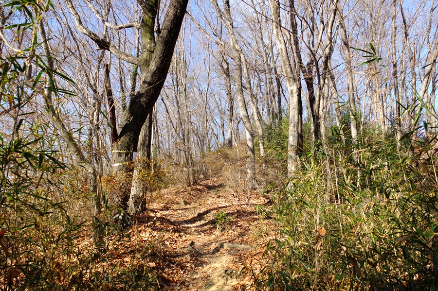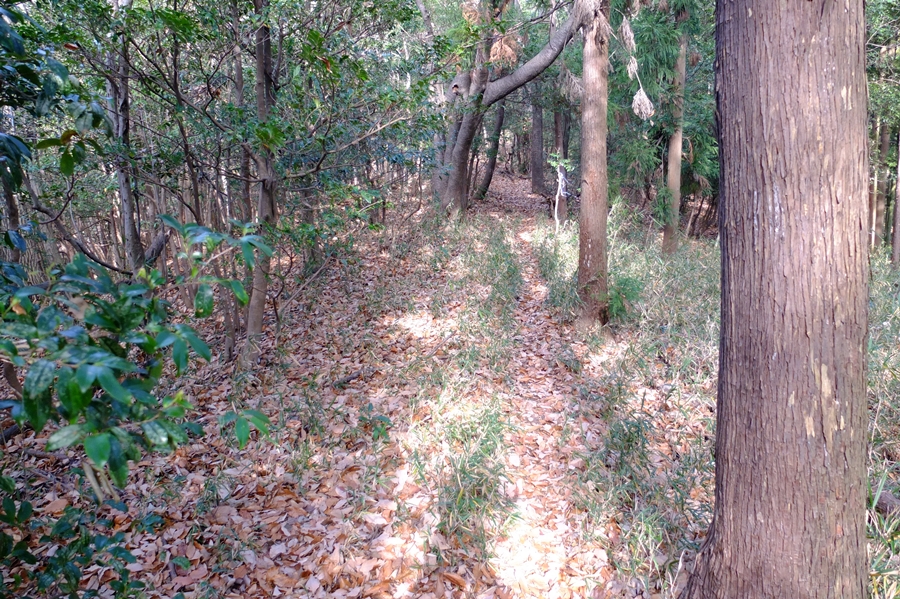 ここからの下山路は人通りが少ないようで、枯葉で踏み跡不鮮明だった。
