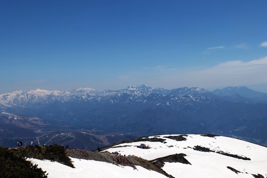 八方尾根で振り返ると戸隠、高妻山が綺麗に見えます。
