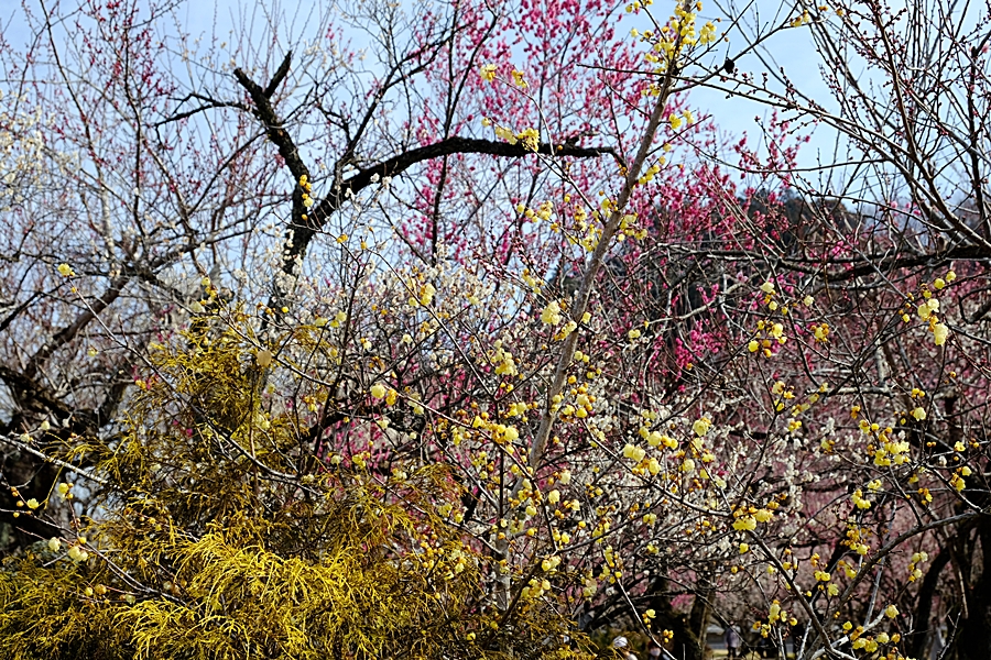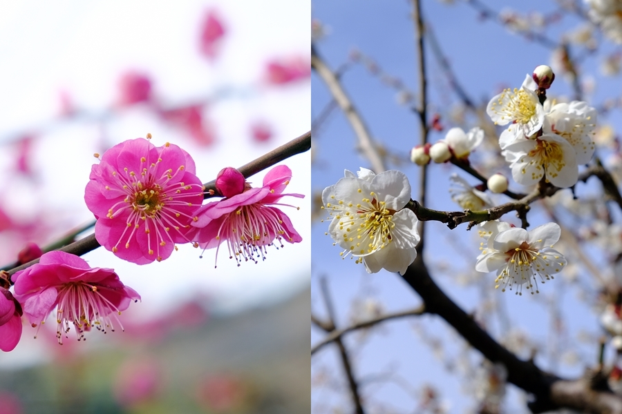 梅林に向かって歩く。紅梅と白梅をセットで