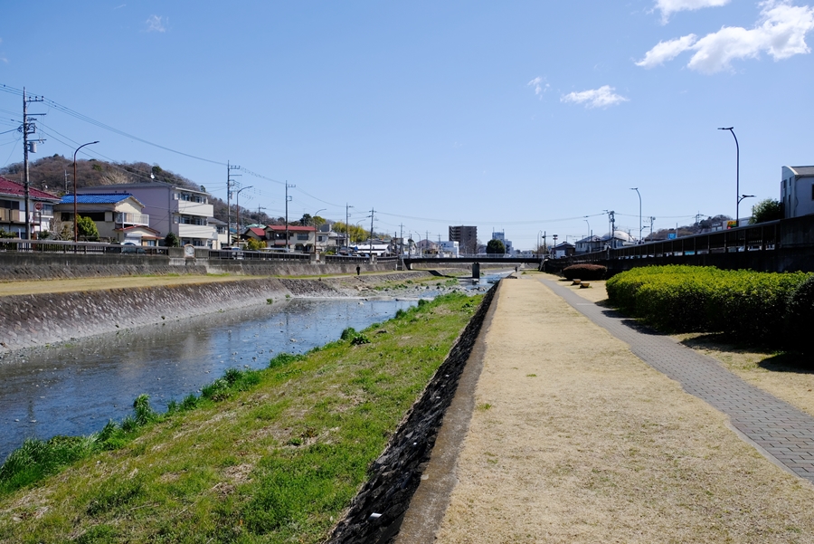 駅を北に行く。目の前は橋で下に川が流れている。遠くに目的の山並みが見えた。