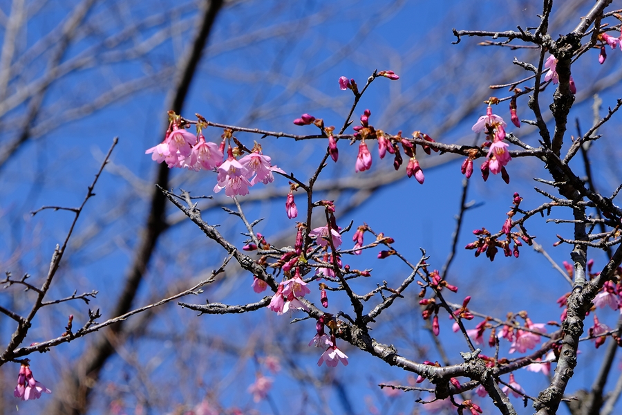 権現山を下る途中に桜が(河津桜系統かな)