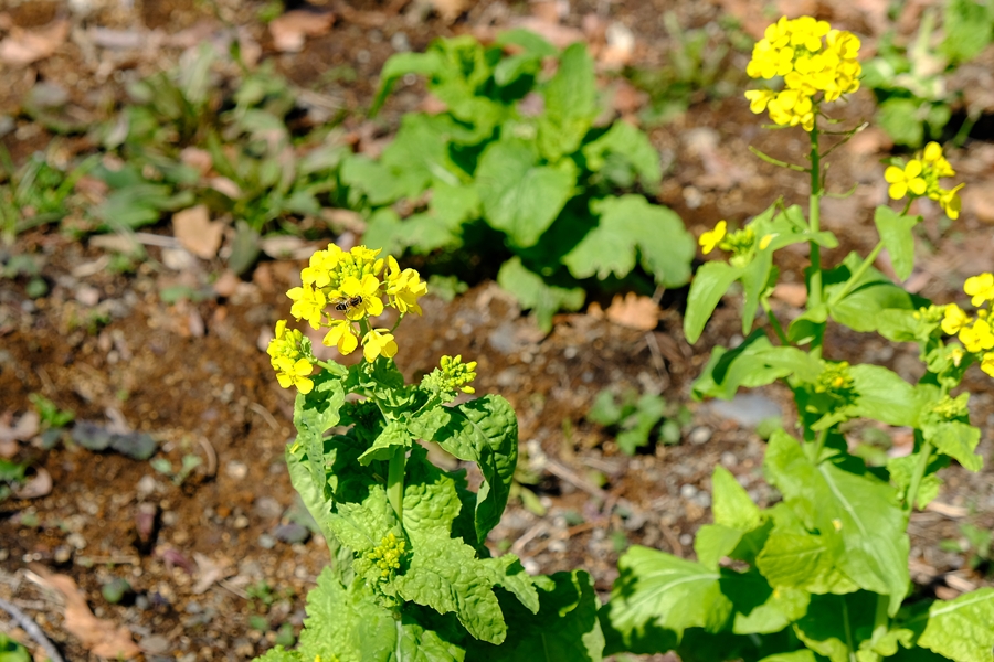 花壇に菜の花が植えられている